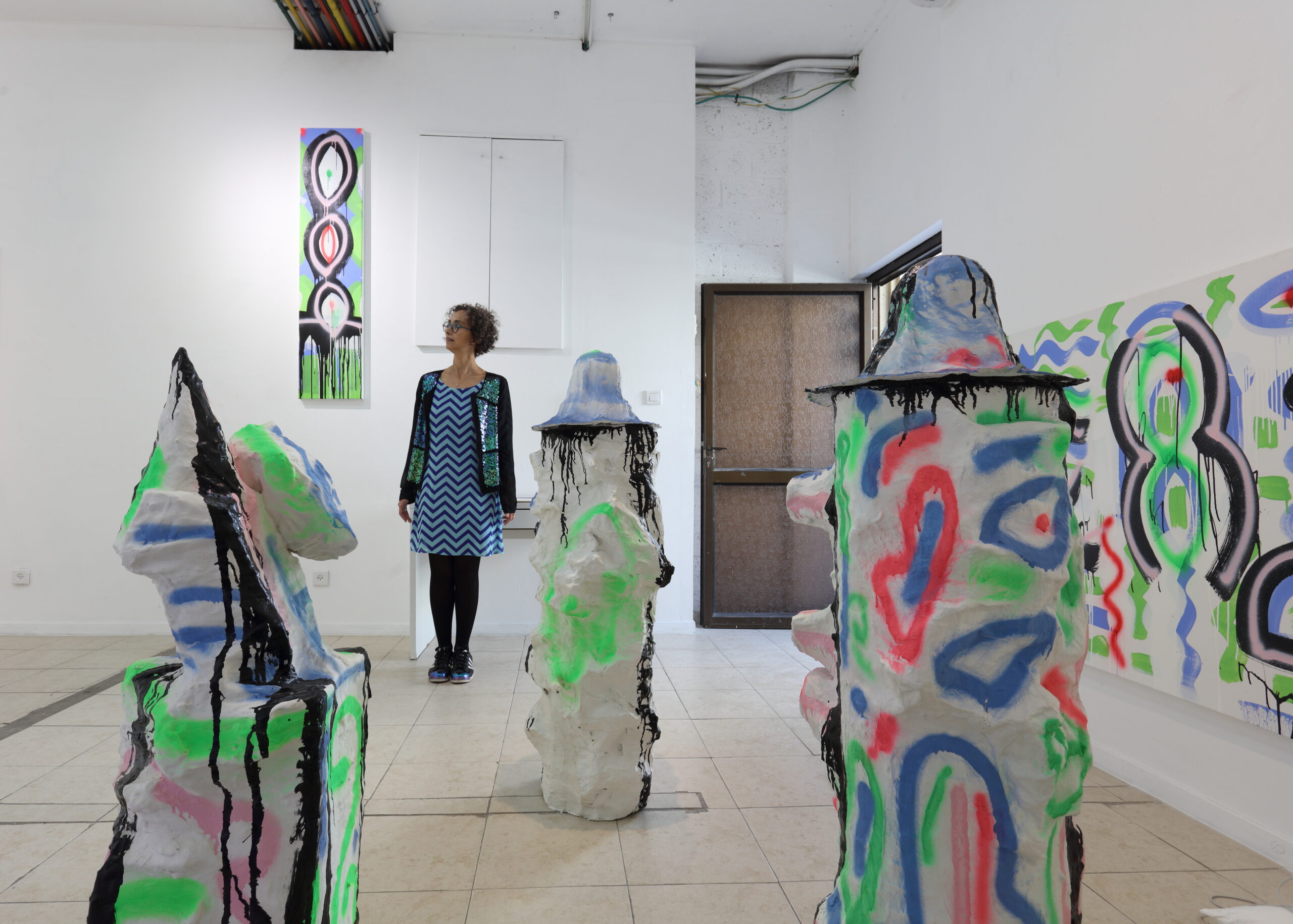 אמנים בסביבת עבודתם.